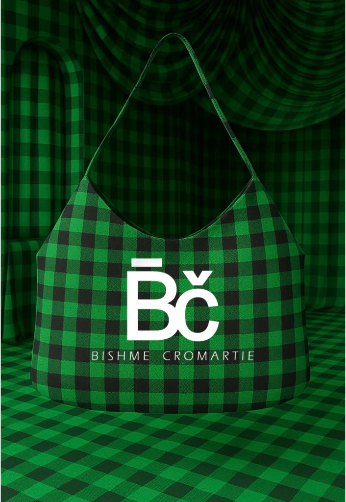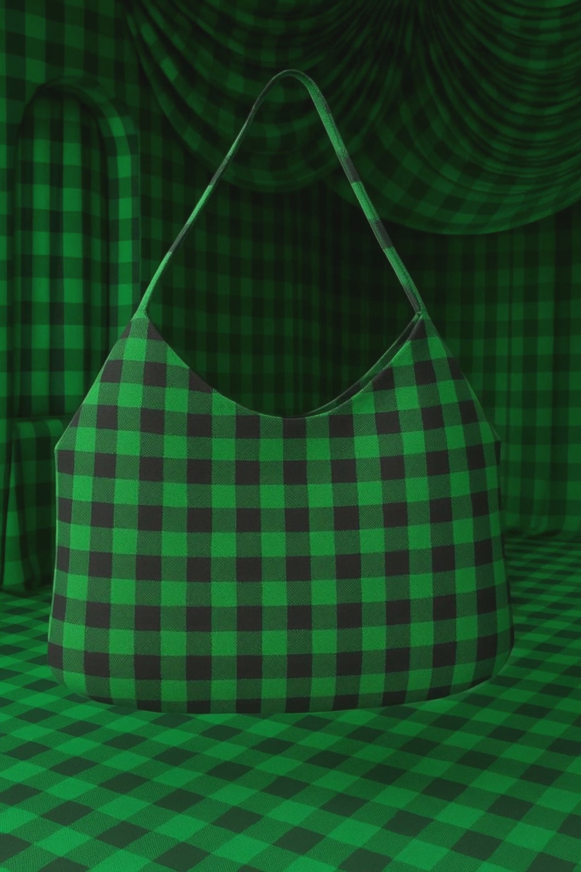 Crafted in the collection’s signature green + black plaid, the tote embodies the spirit of Baroque Clairvoyance: bold, timeless, and unforgettable.