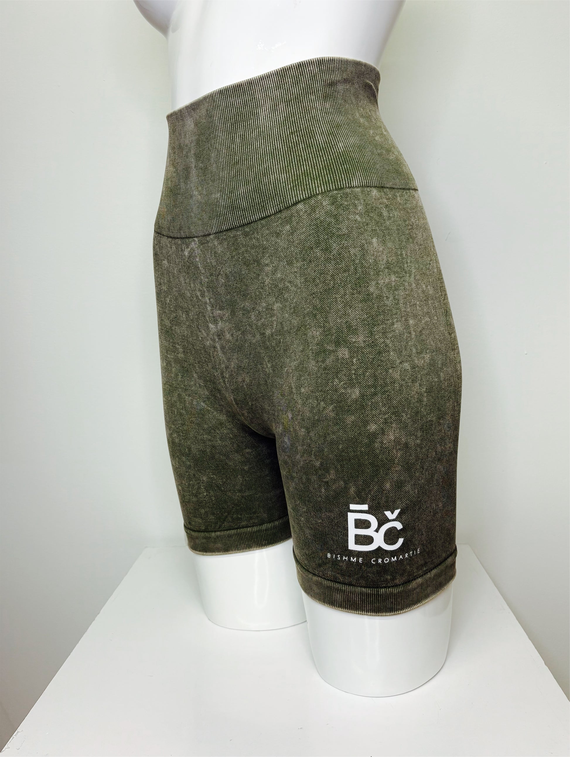 Sporty Bish High-Rise shorts in Greenmount Olive